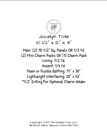 This beautiful tote measures 10 1/2" x 12" x 4" and is a perfect way to use a favorite panel square on each side!