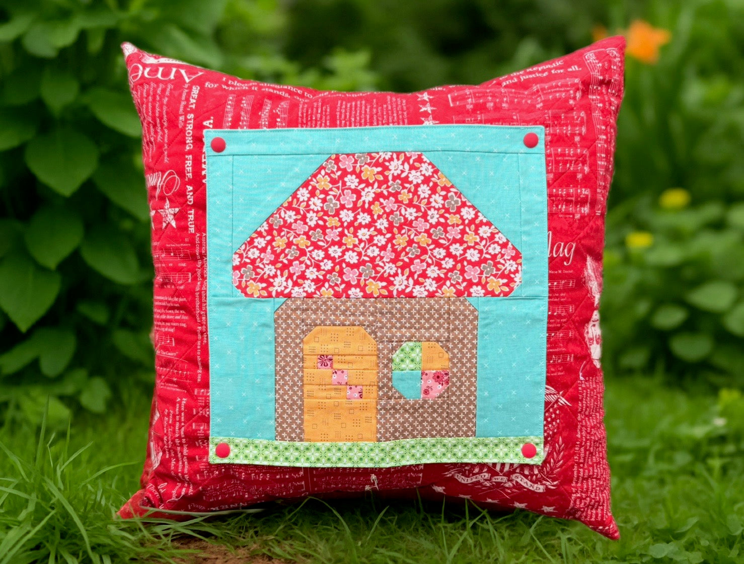 The Back Home Pillow Series is exclusive to The Quilted Cow. The Back Home Pillow Series 2025 is kitted in cheerful Lori Holt fabrics with a different snap-on "accessory" each month.