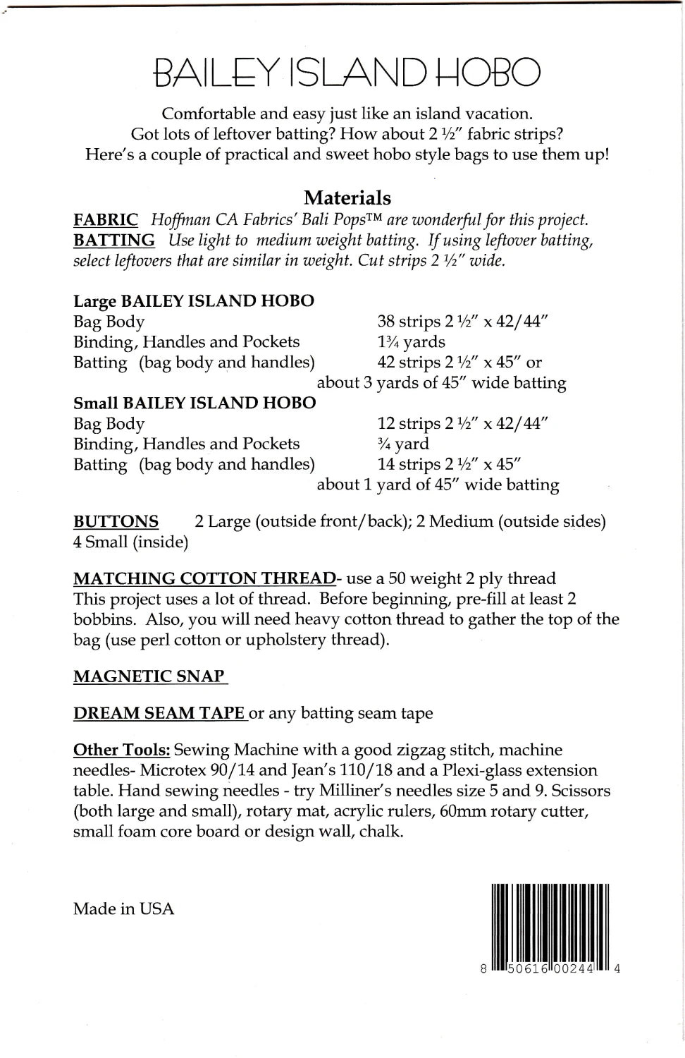 Comfortable and easy just like an island vacation. Got lots of leftover batting! How about 2 1/2" fabric strips?