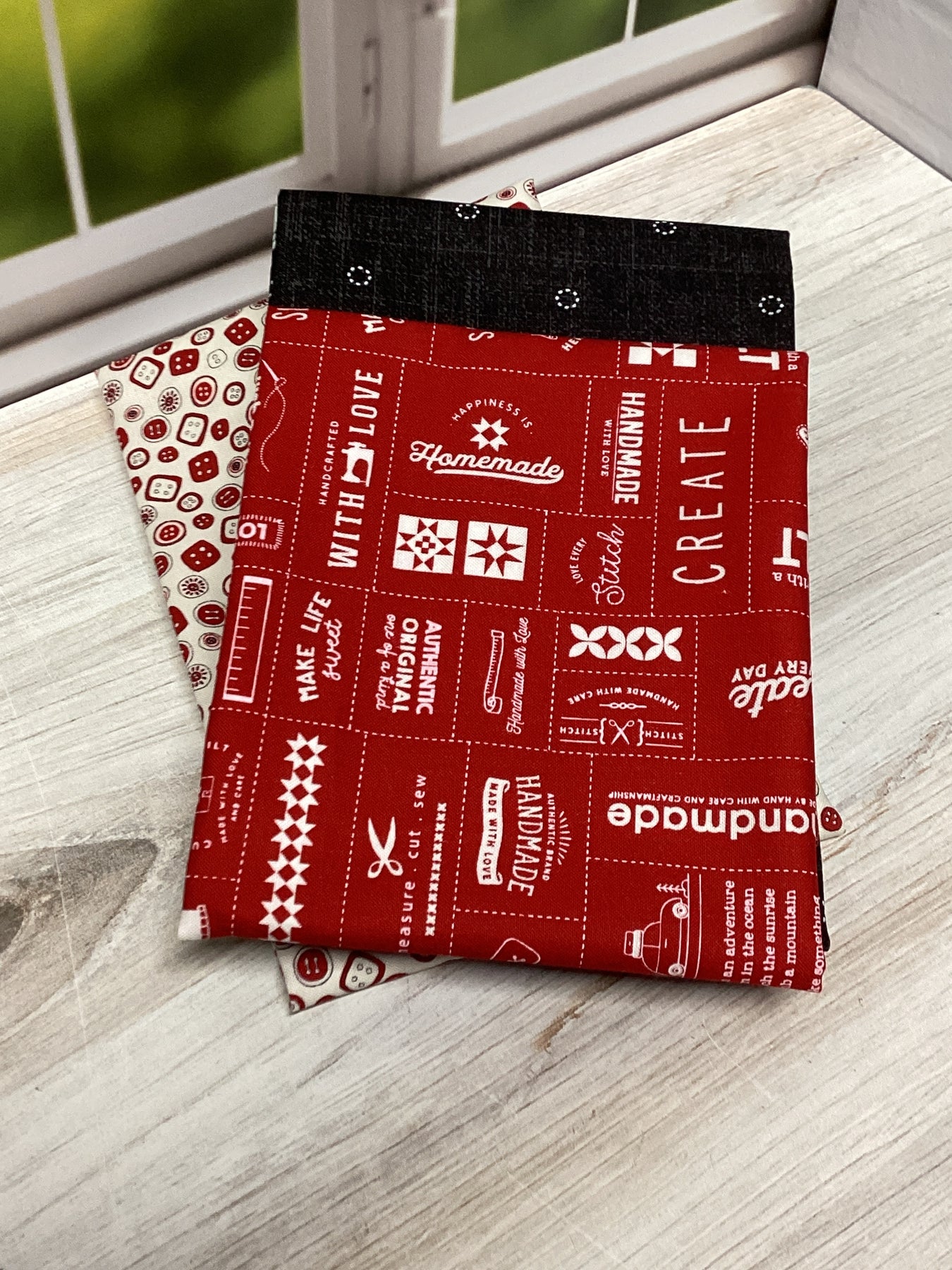 Skill level: Advanced beginner - Intermediate Total of 6 pages The pattern comes with THREE sizes. The pattern has written instructions with all color step-by-step pictures Measurements are both IN INCHES. FINISHED SIZE: Big Pouch: 12½’’W x 10¼¿H Medium Pouch: 9¾’’W x 7½’’H Small Pouch: 6¾’’ x 5¾’’ MATERIALS AND SUPPLIES Exterior fabric: Assorted print scraps or (1) Fat quarter Lining fabric: Fat quarter Binding fabric: Fat quarter Foam stabilizer: Fat quarter, such as Soft and Stable or Pellon Flex Foam or Bosal In-R-Form (* You can use a cotton batting or single side fusible foam.) Premium Clear Vinyl: 13’’(33cm) x 13’’(33cm) Zipper: at least 13’’(33cm), #5 nylon *available here. Optional Woven Labels: available here. Fabric glue such as Roxann Glue-Baste-It