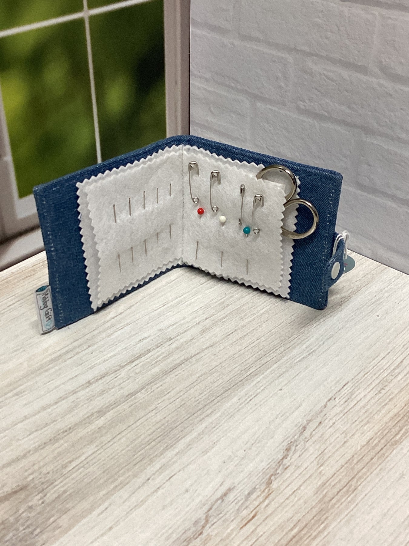 This sweet denim with embroidered daisy case measures 3 1/2" x 4" closed and closes with a snap! Featured in our March Subscription Box!